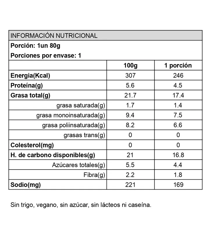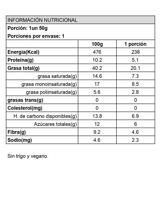 nutricional vegana, sin trigo ni azúcar, perfecta para personas con intolerancias