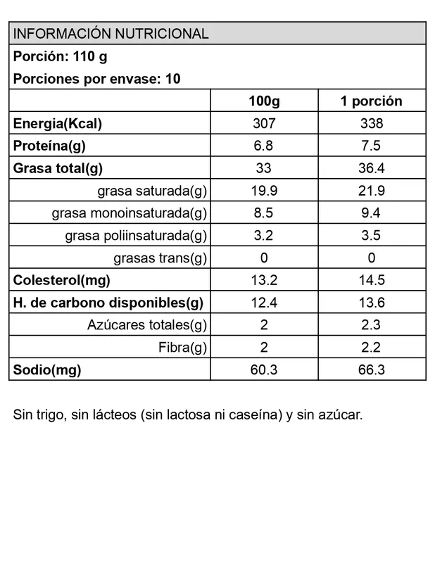 *Comentario y tabla nutricional por Ana María Vidaurre, nutricionista.